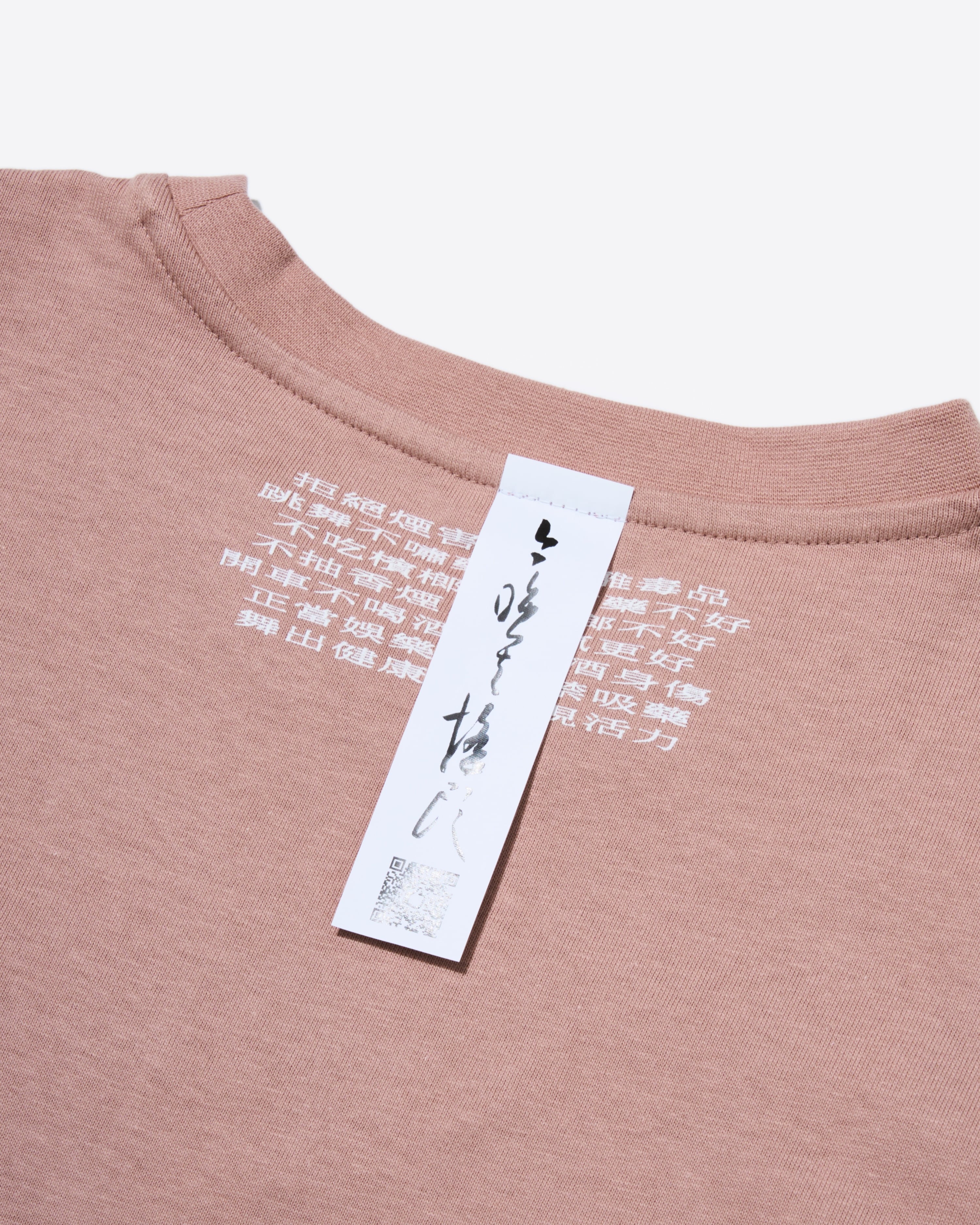 DJユニット〈RICH & BUSY〉のオリジナルマーチャンダイズ。2000年代初頭の台湾・桃園に数年間だけ存在した怪物夜店「獅子王舞廳」にオマージュを捧げたグラフィックTシャツ。シルバーインクを使用したシルクスクリーンプリント、裾のユニットロゴ刺繍、首元の短冊タグなど、細部にこだわった仕様。ボディは肉厚でソフトな風合い、ドロップショルダーのオーバーサイズフィット。